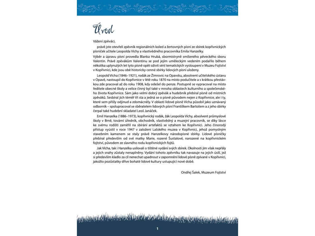 Výběr a úpravu písní provedla Blanka Hrubá, sbormistryně smíšeného pěveckého sboru Valentin.